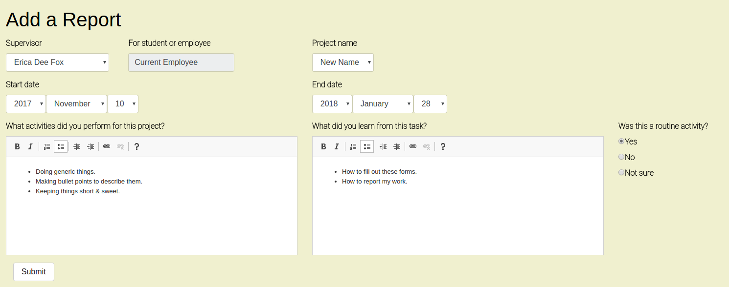 Once they've added you to a project, you'll be able to write your reports on it. You have the ability to edit and delete any reports that you're a contributor to.